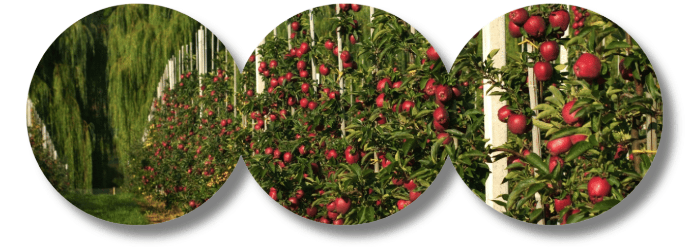 Rodzaje owoców: Czereśnie, Gruszki, Jabłka, Śliwki, Agrest czerwony, Porzeczka czerwona, Malina (uprawa tunelowa), Truskawka.